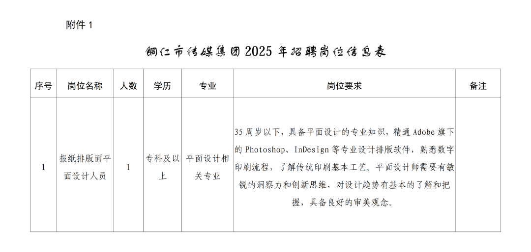 (3)报名所需材料:铜仁市传媒集团2025年招聘报名信息表(附件2)、本人有效居民身份证(扫描件)、毕业证、学位证、专业技术职称证书、从业资格证书、近期蓝底正面免冠1寸彩色照片(电子版)、劳动合同或工作证明。