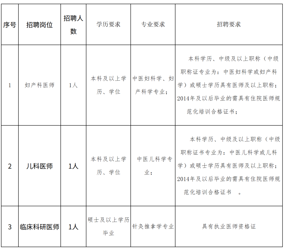 现根据医院业务发展需要和结合医院人才需求情况,经研究决定:面向社会公开招聘3名编外合同制医师,现将本次招聘事项公告如下: