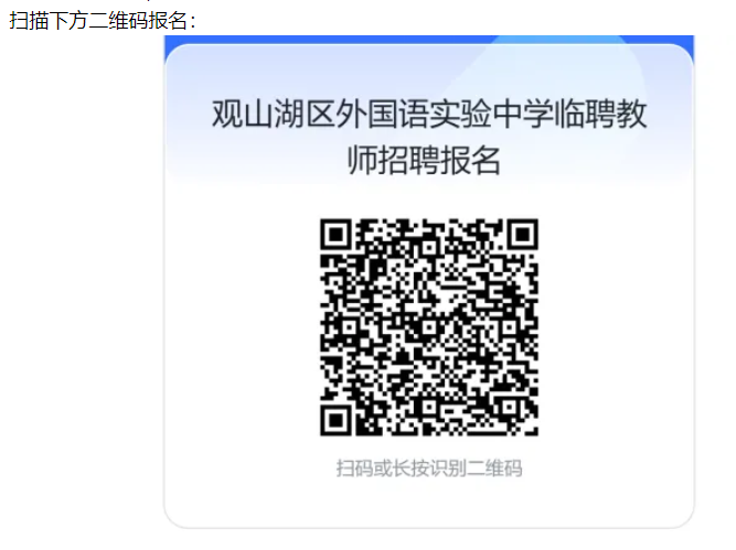 2.报名方式,搜索微信公众号【观山湖区外国语实验中学】主页-【临聘教师】栏目报名,或扫描下方二维码报名: