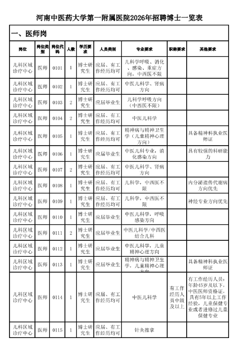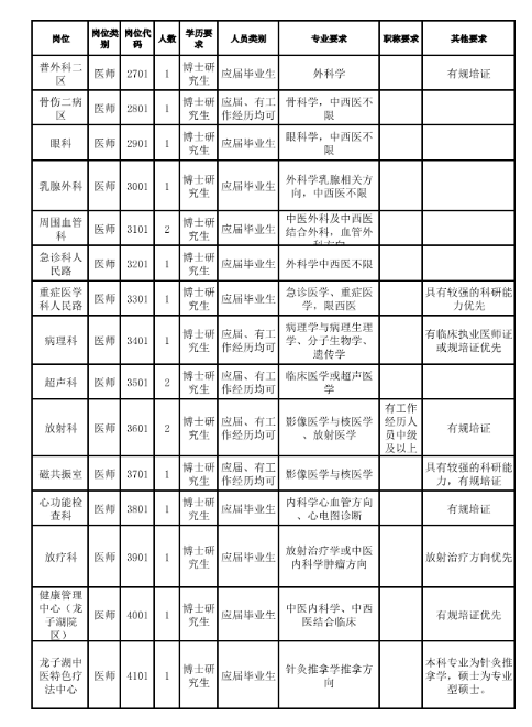 6.具有博士研究生学历、学位;其中医师岗位具有相应资质。