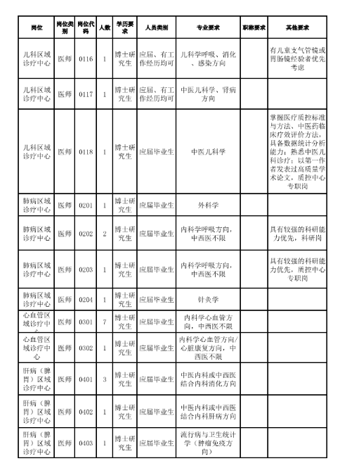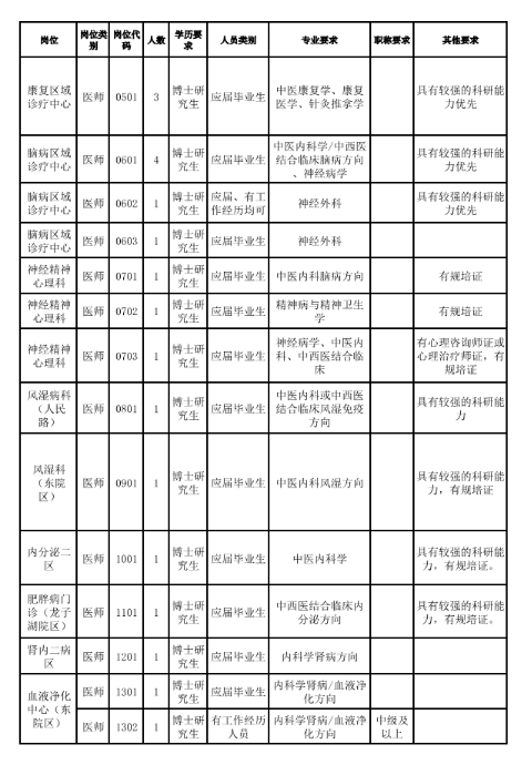 (一)应聘六大区域中医诊疗中心的博士研究生要求进入医院博士后科研工作站,其他岗位视情况而定。
