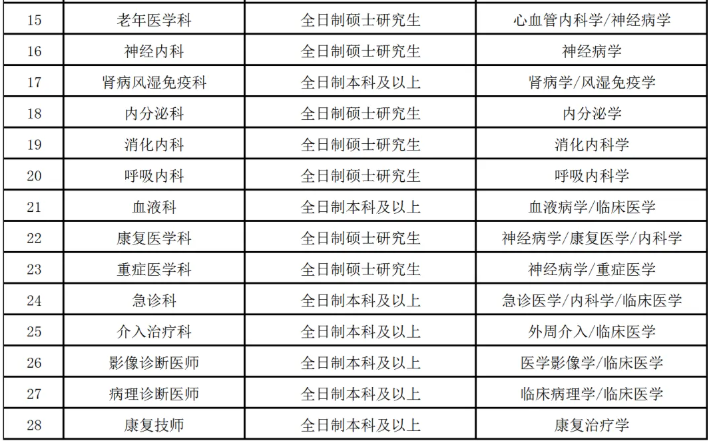 各临床诊断专业应聘人员,必须具有执业医师资格证书和住院医师规范化培训证书;