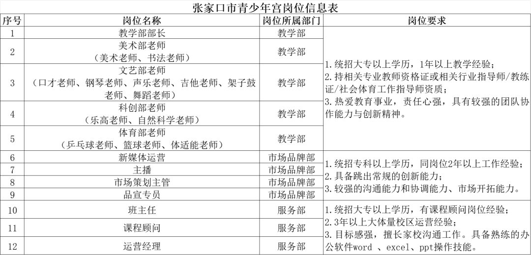 张家口市青少年宫人才招聘公告