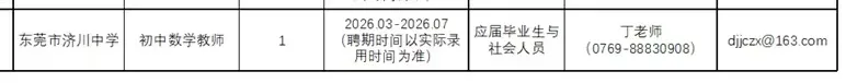 本公告由东莞市济川中学负责解释,具体咨询联系方式见《岗位表》。