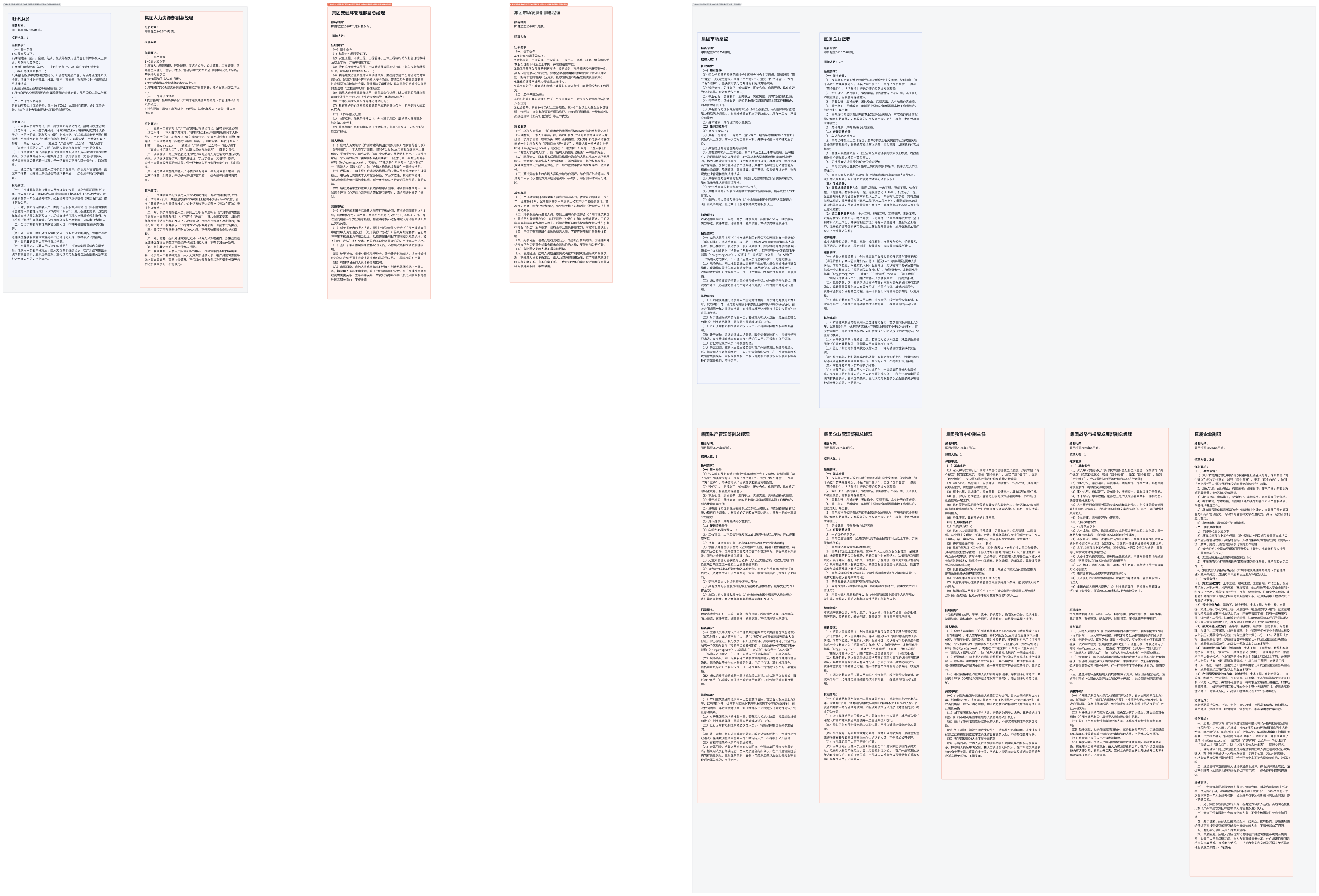 广州市建筑集团有限公司关于公开招聘集团中层管理人员的通告
