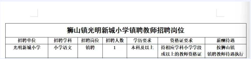 一切招聘解释权归光明新城小学(0757-81763998)。