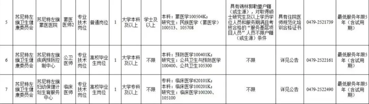 招聘政策咨询电话:0479-2521739(旗卫健委)