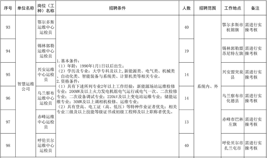 (一)本次智慧运维公司招聘人员为固定期限劳动合同用工,待遇按照内蒙古能源集团有限公司及智慧运维公司等有关规定执行。