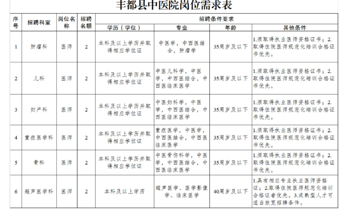 邮箱投递:请将个人简历及相关资格证件电子版,发送至丰都县中医院组织人事部邮箱2181001788@qq.com。
