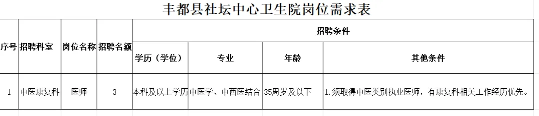 邮箱投递:请将个人简历及相关资格证件电子版,发送至丰都县社坛中心卫生院人事科邮箱1451307310@qq.com。