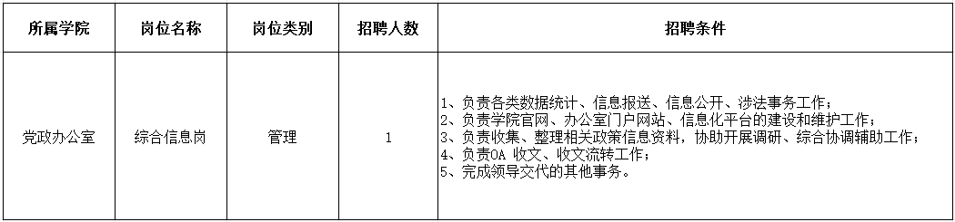 因工作需要,信息工程学院拟在全体教职工(不含劳务派遣、劳务协议、工勤岗等)中公开招聘1名工作人员,具体通知要求如下。