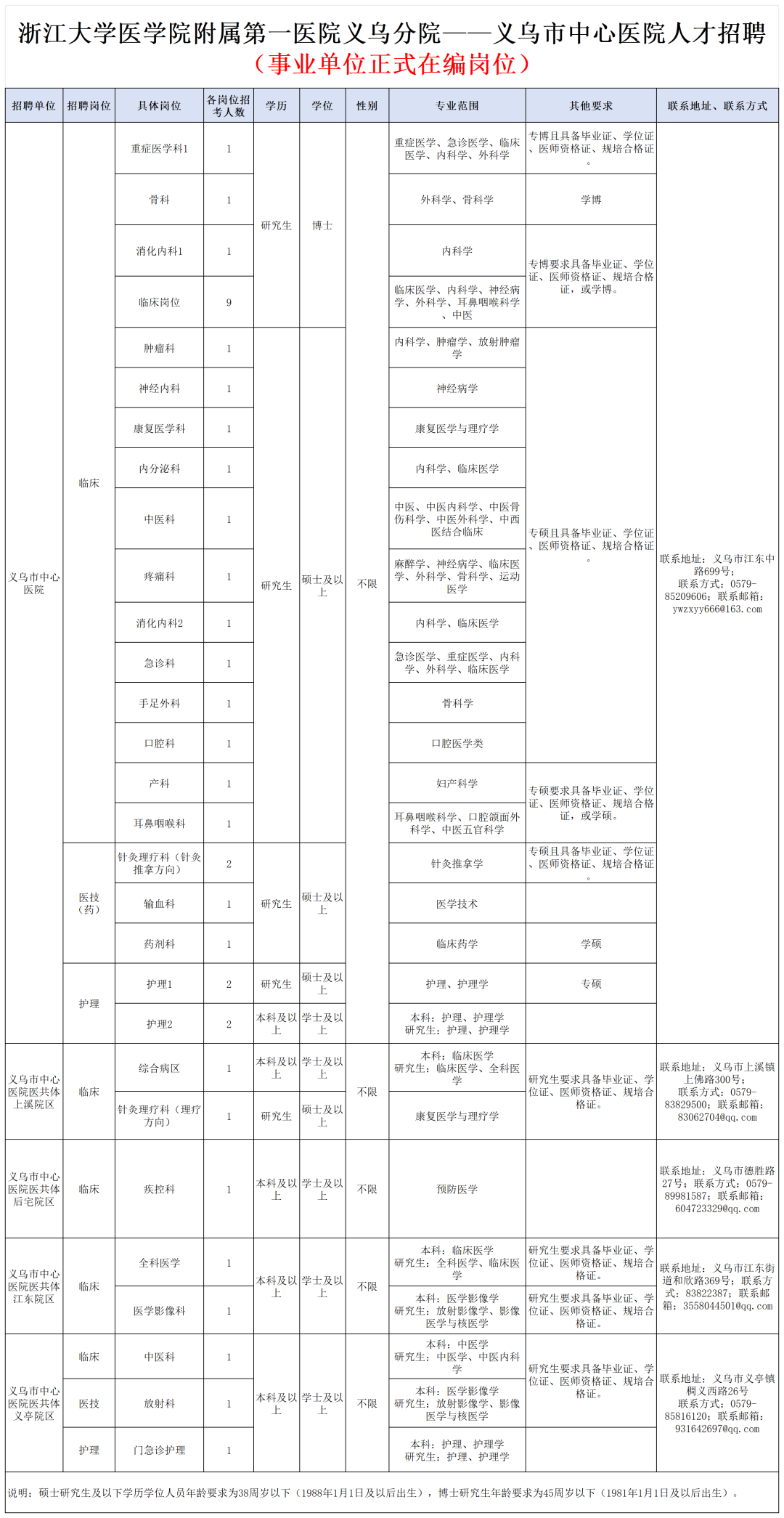 (四)其他事项及详情请前往义乌市中心医院官网(义乌市中心医院医共体面向2026届毕业生校园招聘公告-浙江中医药大学专场工作方案)进行查看
