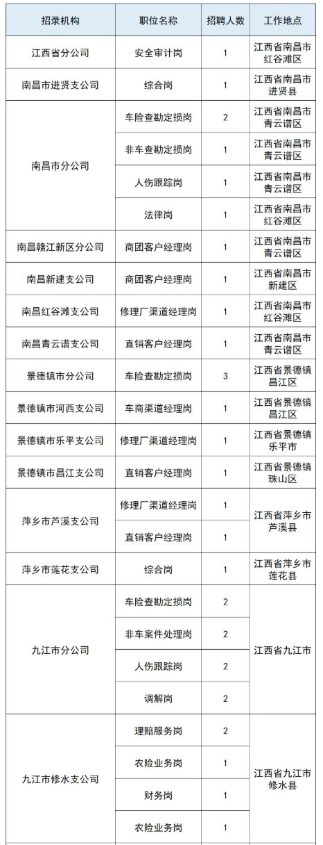 中国人民财产保险股份有限公司江西省分公司2026届校园招聘