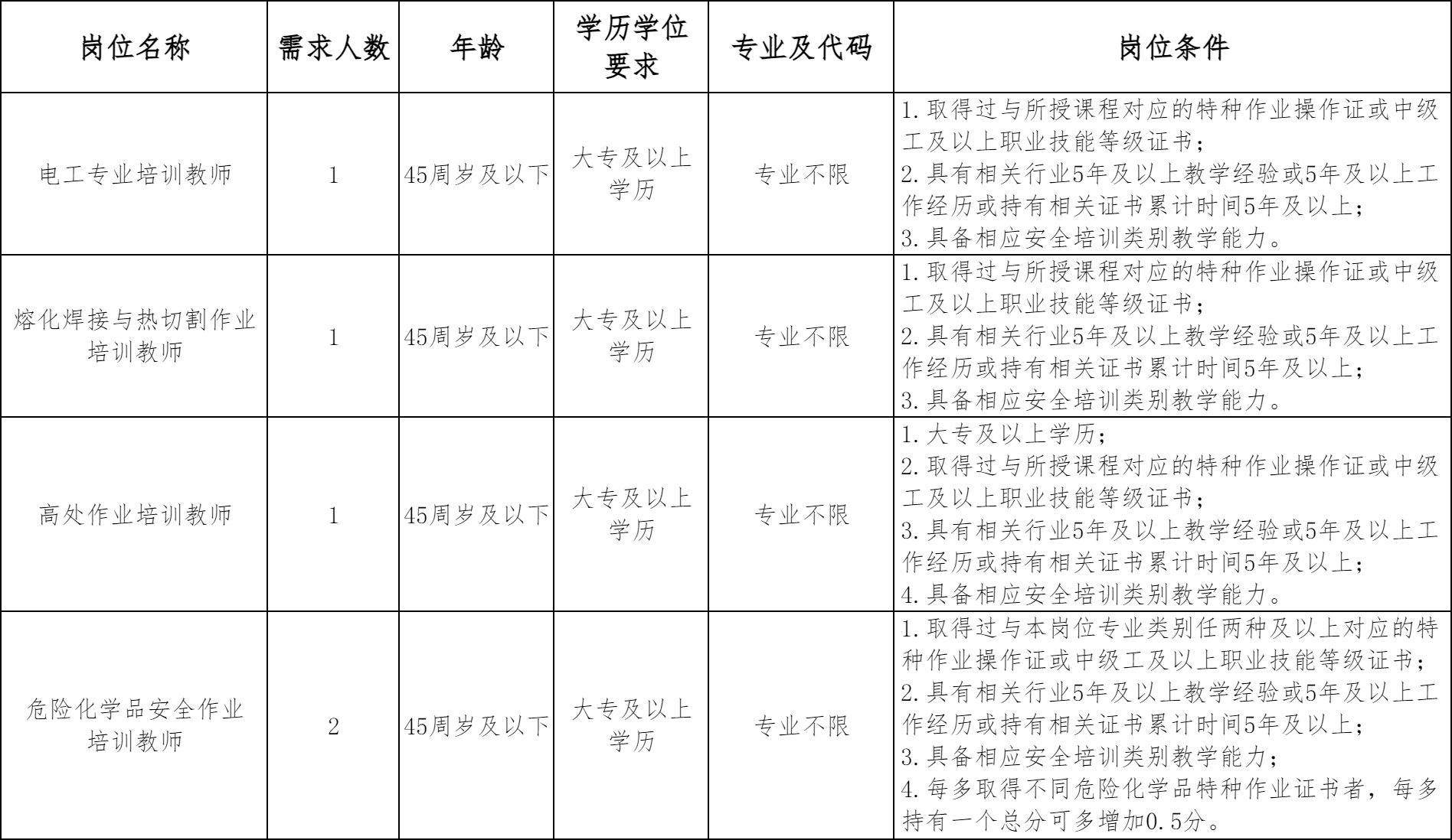 详见附件1《吉安市人才发展集团有限公司新干县分公司面向社会公开招聘专职教师岗位及任职要求》。本次招聘岗位年龄计算方法为:45周岁及以下是指1980年2月1日(含)以后出生。招聘岗位要求毕业证书或资格证书获取的时间截至2026年2月1日(含)。