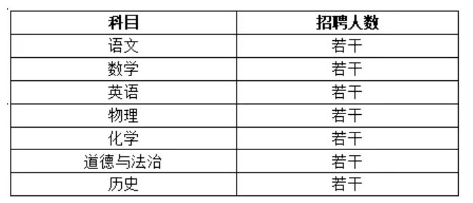 招聘初中语文、数学、英语、物理、化学、道德与法治、历史教师。