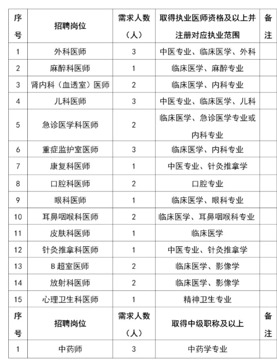 根据我院业务发展需要,现面向社会公开招聘医务人员若干名。凡有意向到我院工作,且符合报名条件者均可报名应聘,现将有关事项公告如下: