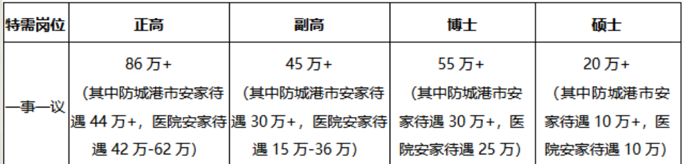 医院为符合医院及防城港市引进政策的人才给予人才激励:待遇如下(税前):