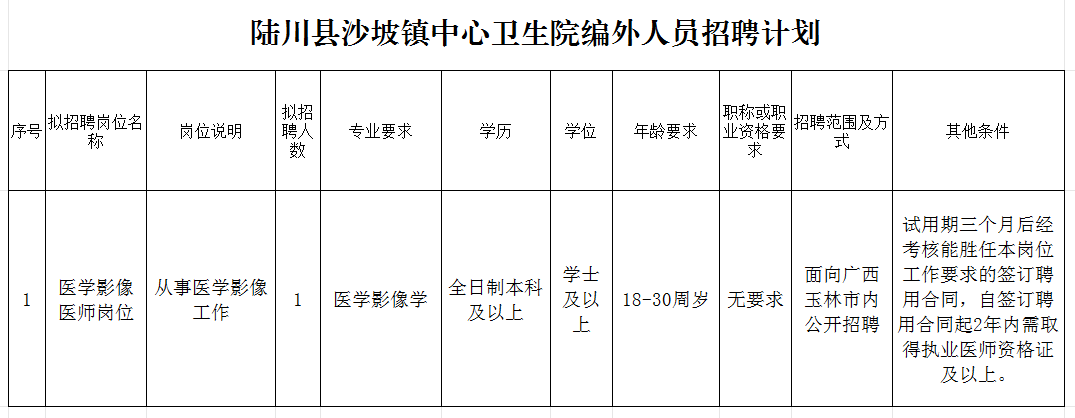 报名地点:陆川县沙坡镇中心卫生院公卫楼五楼行政办公室。(咨询电话:7012189)。
