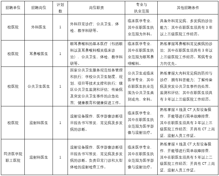 为提高医疗服务水平,优化医务人员队伍结构,现面向社会公开招聘医生5人。