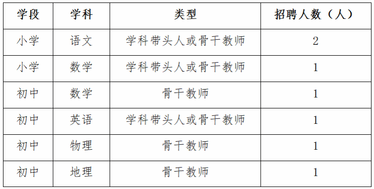 1.师范类高校、综合性大学相关专业本科及以上学历,具有6年及以上中小学相关学科教学经历,年龄不超过45周岁(1981年1月1日以后出生),特别优秀者年龄可适当放宽。