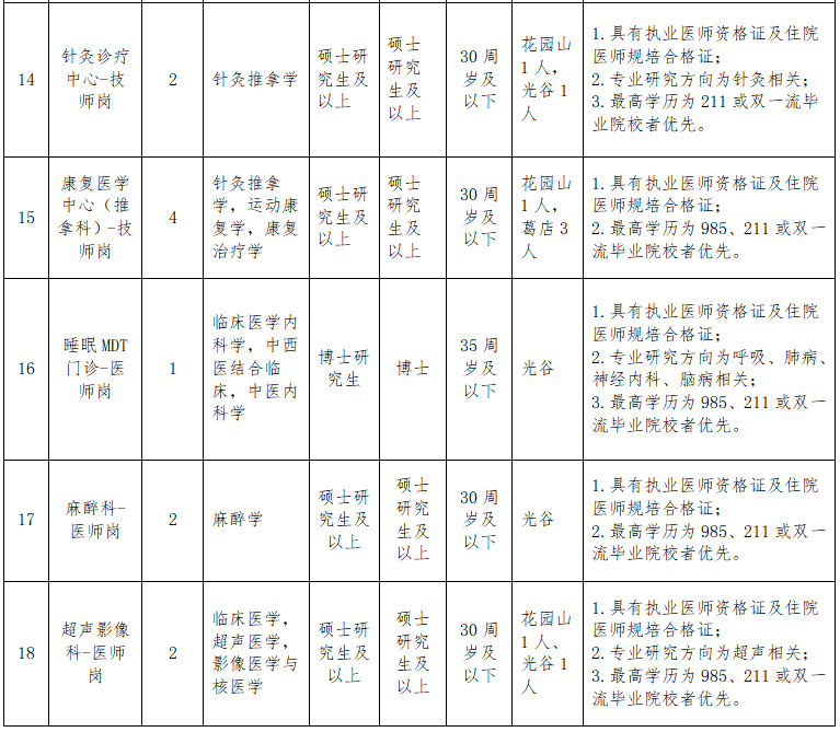 根据业务发展需要,湖北省中医院(湖北中医药大学附属医院)面向社会公开招聘编外聘用25名医技工作人员,公告如下: