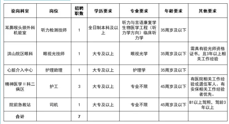 部分大专可报,不限专业!武汉大学人民医院招聘7人