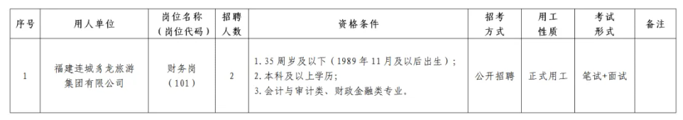 3.本次公告仅适用于本次公开招聘工作,由福建连城豸龙旅游集团有限公司、龙岩人才和大数据发展集团有限公司负责解释。