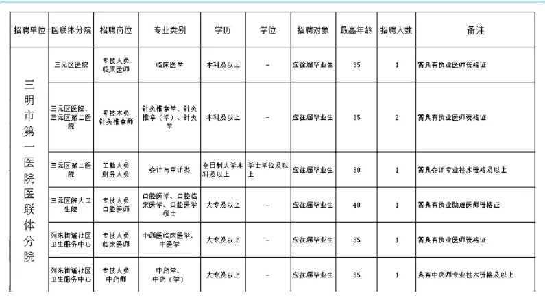本单位2025年10月21日发布的《三明市第一医院医联体分院关于公开招收编外工作人员的通知》部分岗位未达到开考比例,为保障招聘工作顺利进行,充分选拔优秀人才,经研究决定对未达到开考比例的岗位进行重新挂网招聘,现将重新招聘事宜公告如下: