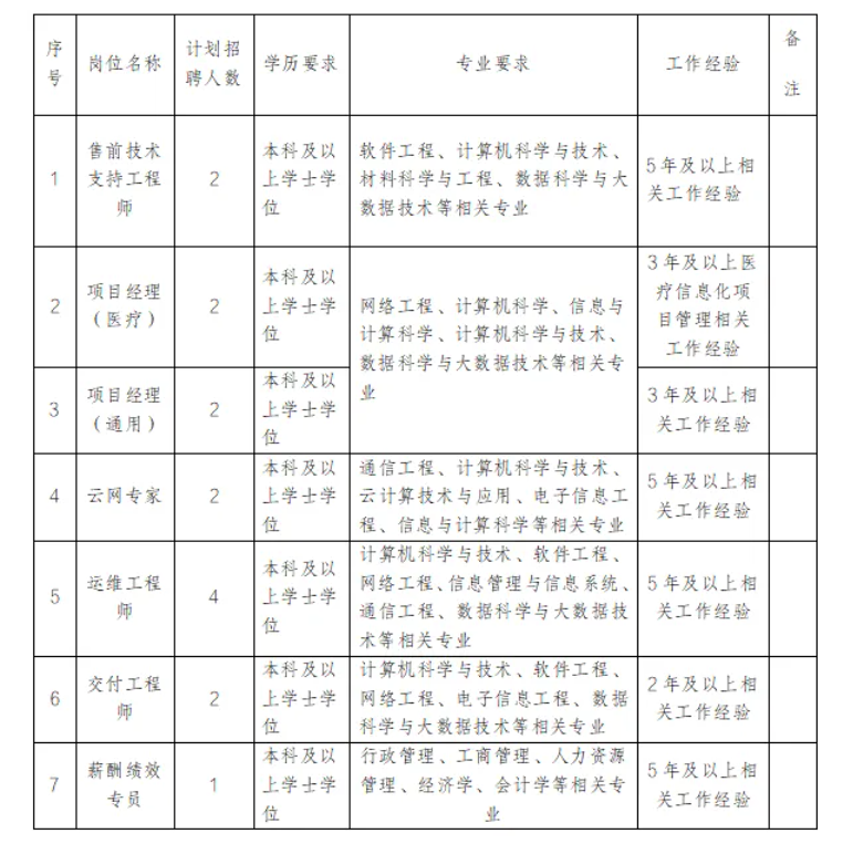 本次招聘岗位及要求如下: