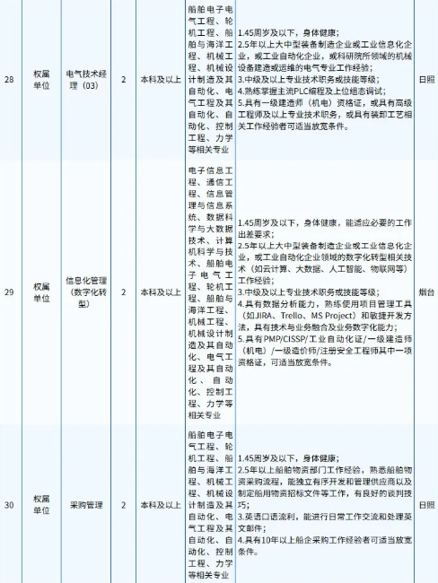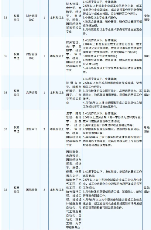 招聘数量、招聘岗位专业要求以及其他条件,详见需求表。