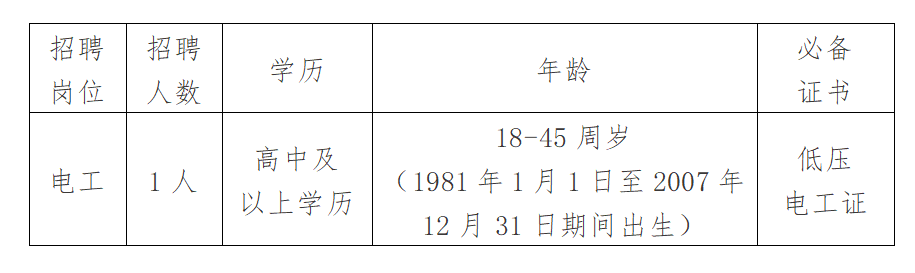 报名材料:递交《应聘人员报名表》(可在报名地点现场填写或自行下载附件填写),并出示本人身份证、毕业证、电工证原件(有效期内)及全部复印件,同时提供一寸白底近期免冠照片3张,资格审查通过后,考生需缴纳报名费50元。