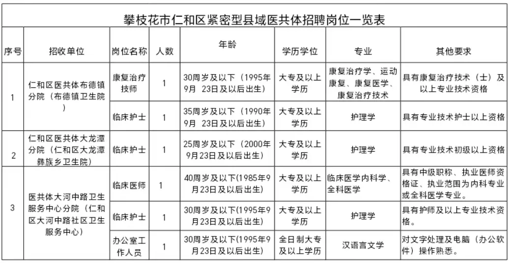 在攀枝花市仁和区医共体总医院即攀枝花市仁和区人民医院院务公开栏、微信公众号上发布招聘公告。