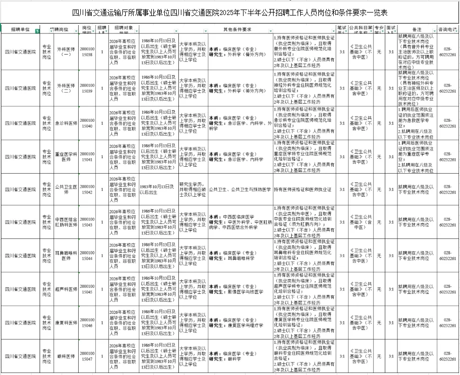 面向2026年高校应届毕业生和符合职位要求的社会在职、非在职人员,公开招聘符合《四川省交通运输厅所属事业单位2025年下半年公开招聘工作人员岗位和条件要求一览表》(含表注,以下简称《岗位和条件要求一览表》)相关岗位条件要求和本公告其他要求的人员。