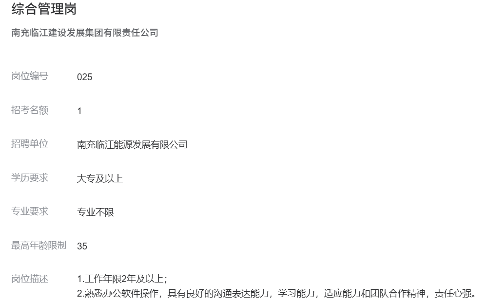 南充临江建设发展集团有限责任公司2025年下半年公开招聘工作人员公告