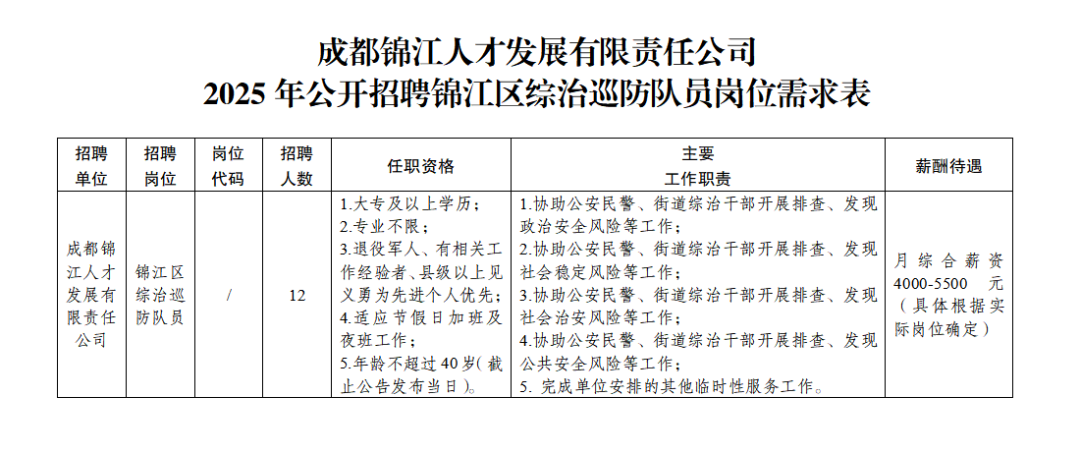 通过“成都锦江人才发展有限责任公司”微信公众号面向社会发布招聘公告。